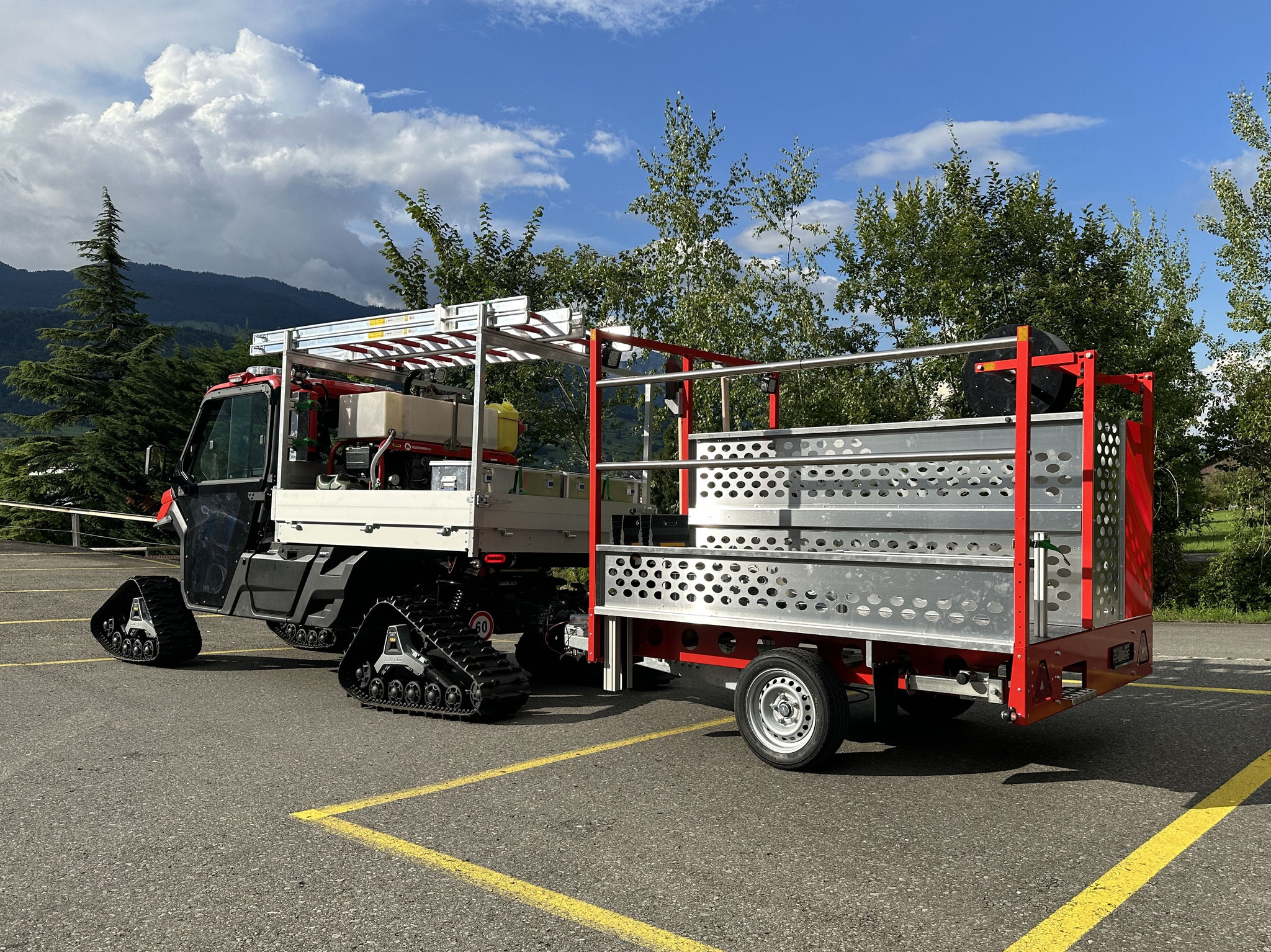 Dieser Anhänger vereint ein Chaosschlauchverleger und ein Motorspritzenanhänger.
